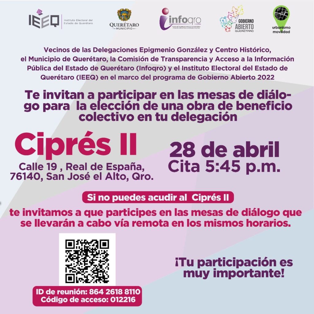 Hoy comienza el ejercicio de #GobiernoAbierto 2022 para Querétaro, y en el @ColectivoEhya hicimos lo posible por organizar nuestros horarios familiares y laborales para poder asistir, lamentablemente tendremos que hacerlo vía remota (a ver si conseguimos entrar) pero SI hicimos nuestra tarea.